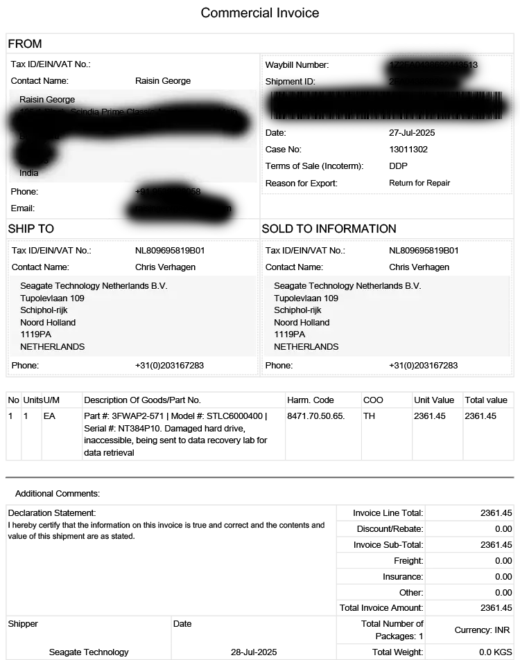 The catch? The drive had to be shipped all the way to Seagate’s lab in Amsterdam, Netherlands.