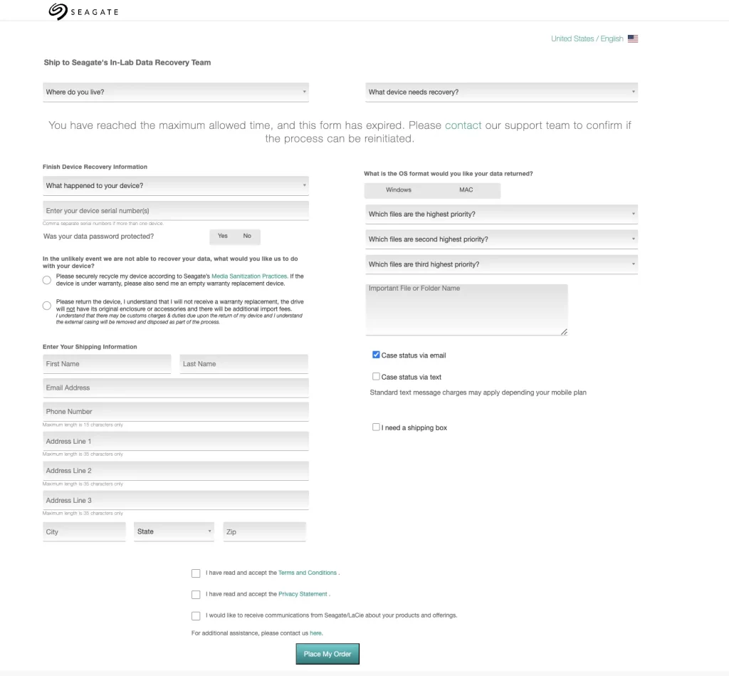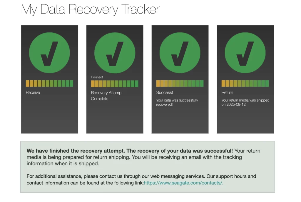“We have received your media at our Seagate lab in Amsterdam. Estimated turn-around time: 30–45 business days.”